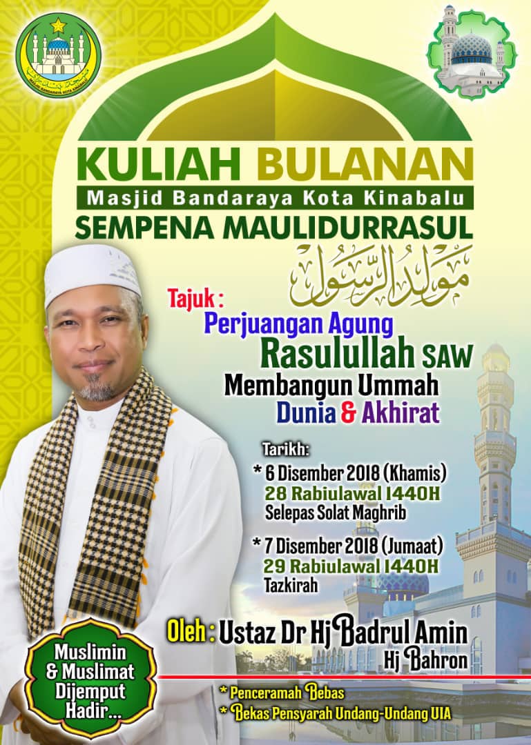 Masjid Bandaraya Kota Kinabalu على تويتر Jangan Lupa Hari Ini Kuliah Bulanan Masjid Bandaraya Kota Kinabalu Sempena Maulidurrasul 6 Disember 2018 Khamis Selepas Solat Maghrib Tazkirah Jumaat